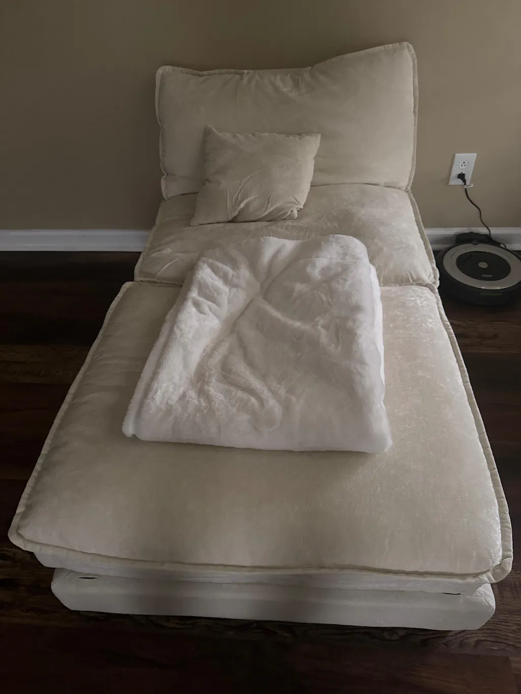 The cushions are compressed in the plasctic baas, Please allow up to 2-3 days for the Back cushion and seat cushion to fully expand.